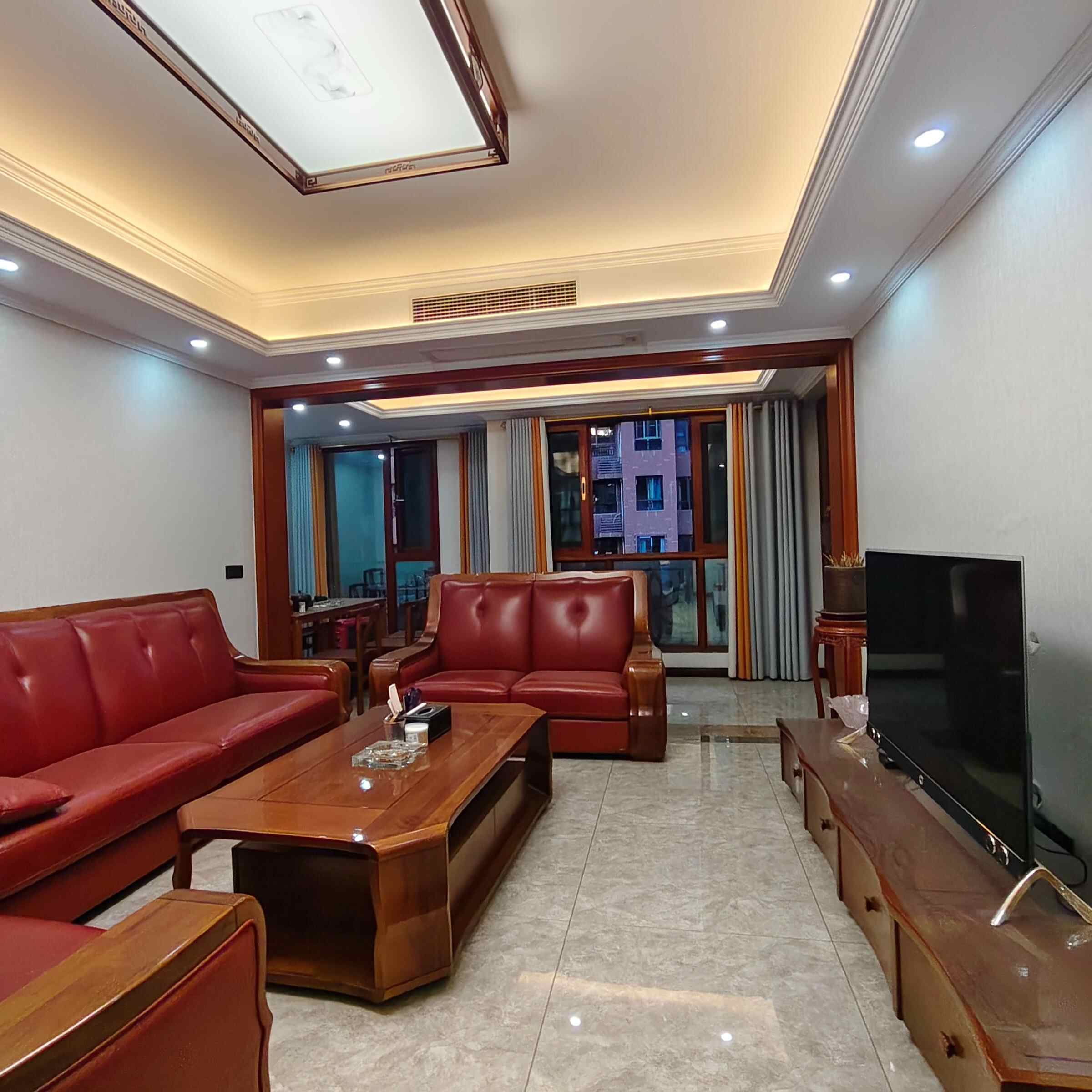 国兴洋房 6楼,面积120平 三房二卫 带茶室 带电梯门口字母车位 装修成本花了将近50万 全实木家具 空调实木真皮大沙发 三个卧室床和床垫喜临门买的都是一万多一张,住了最多三个月